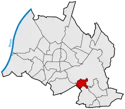 Wolfartsweier is a village and a quarter of Karlsruhe, Baden-Württemberg, Germany. Its population is 3,068 (2020).[1] It was first mentioned in 1261 AD under the name of "Wolvoldeswilere". The local church was first mentioned in 1329. A small creek, called Wettersbach, runs through the village, but in an underground canal for most of its way. Wolfartsweier has a town hall, a Protestant and a catholic church and community centres, and a public outdoor swimming pool.