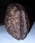 The Wolfsegg Iron, also known as the Salzburg Cube, is a small cuboid mass of iron that was found buried in Tertiary lignite in Wolfsegg am Hausruck, Austria, in 1885.[1] It weighs 785 grams (1 lb 12 oz) and measures 67 mm × 67 mm × 47 mm (2¾" x 2¾" x 1¾"). Four of its sides are roughly flat, while the two remaining sides (opposite each other) are convex. A fairly deep groove is incised all the way around the object, about mid-way up its height.[2][3]