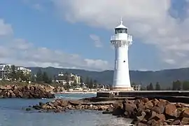 Wollongong Breakwater Lighthouse, also known as Wollongong Harbour Lighthouse, is a historic lighthouse situated on the southern breakwater of the heritage-listed[1] Wollongong Harbour, in Wollongong, New South Wales in Australia. Wollongong is the only place in the east of Australia to have two lighthouses located in close proximity of each other, the other being Wollongong Head Lighthouse. While no longer used, the lighthouse was restored in 2002 as operational and is listed an official local heritage building.