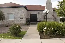 The building is constructed of cut stone in an ashlar pattern. It was designed by M. H. Starkweather (1891-1972) of Tucson.[2]
