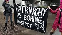 Many participants marched to support women's rights and to reinforce protests against Donald Trump, even though it was not officially billed as an "anti-Trump" event.[5][6] Leading up to the march, The Portland Mercury's event description read: "Portland will absolutely be one of the cities engaging in this series of nationwide marches to show support for women's rights in the face of a serial sex-offender and his white supremacist friends entering the White House."[7]