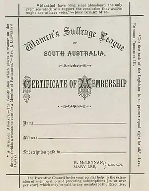 - ↑ "Lead-up to the campaign for women's suffrage". State Library of South Australia. Retrieved 24 July 2021.