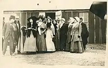 Other groups of people, such as those involved in the liquor industry, textile factory owners, and those already in political power opposed women's suffrage in Texas because they did not want the status quo to change.[45] A men's social club in Houston staged a mock suffrage parade in 1913.[101] The social club members dressed as suffragists and mocked the suffrage movement.[101]