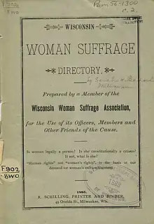- 1 2 "Women's Suffrage in Wisconsin". Wisconsin Historical Society. 2019-06-05. Retrieved 2021-01-05.