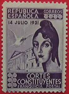 A postage stamp issued by Correos during the Second Republic honoring women in the 1931 Cortes Constituyentes.