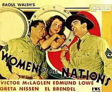Women of All Nations is a 1931 American pre-Code military comedy film directed by Raoul Walsh and starring Victor McLaglen, Edmund Lowe, Greta Nissen and El Brendel. It was the second of three sequels to Walsh's 1926 film, What Price Glory?, with McLaglen and Lowe reprising their roles.[1]