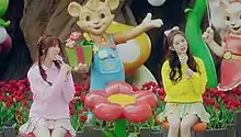 A scene in the music video where Momoland's Jane and Daisy appear in an amusement park.