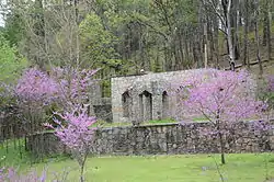 Wonderland Cave is the largest cave in northwestern Arkansas. It is located on Dartmoor Road in Bella Vista, northeast of Bella Vista Lake and east of United States Route 71. The published report of the cave dates to 1868. Purchased in 1917, the cave was developed by Clarence A. Linebarger in 1929, opening it as a nightclub on March 1, 1930. Located 300 feet into the cave was a cavernous space hosting a stage for musicians, a bar, and wood/stone booths.[2] The Arkansas State General Assembly met in the cave in 1931.[3] In 1935, Linebarger started the Linebarger winery in the cave, sold under the brand "Belle of Bella Vista and Wonderland".[4]