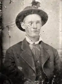 In January 1882, Robert Ford and Liddil surrendered to Sheriff James Timberlake for Hite's murder, on the condition that they would receive pardons and a reward.[4] Ford claimed that on January 12, 1882, he met with Missouri governor Thomas Crittenden who agreed to pardon Ford for the murder of Wood Hite if he would deliver Jesse James, dead or alive.[5] Robert Ford shot Jesse James shortly after James saw a news report of Liddil's confession to the killing of Hite. Ford claimed that he believed James would turn on him after learning of the murder. After the death of James, Ford stood trial for Hite's murder and was found not guilty by a jury.[6] In April 1901, Liddil was rearrested for the murder of Hite, but was later released, dying of heart failure three months later.