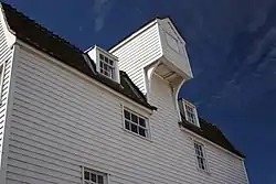 The mill is a Grade I listed building. It is a three-storey building constructed from wood; externally it is clad in white Suffolk boarding and has a Gambrel roof. Its machinery reflects the skills and achievements of the early Industrial Revolution. It has been preserved and is open to the public. The reservoir constructed for demonstration purposes is roughly half an acre in extent, the original 7-acre (28,000 m2) one is now a marina.