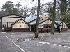 The Kinema in the Woods is located at the centre of the Pinewoods, next to the now derelict Spa Baths and opposite the site of the former Victoria Hotel. Housed in a converted cricket pavilion, it opened in 1922 as one of the first cinemas in Britain. It is the last cinema in the country to employ back projection[34] and also offers regular entertainment on an original Compton Kinestra 3 Manual / 9 Rank organ. The organ was installed in 1987; its console (which is the only surviving Japanese Lacquered console in the UK) was originally installed in the Super Cinema, Charing Cross Road, London between 1927 and 1943. [35]