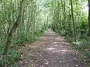 The Spa Trail runs for 3.4 miles (5.5 km) along the former Horncastle Branch Line between Sandy Lane on the outskirts of the village and Thornton Lodge at Fifty Acre near Horncastle.[45][46] It is concurrent with the Viking Way and forms a continuous traffic-free footpath between Woodhall Spa and Horncastle. Along the route can be found sculptures an information board on the history of the railway and local area.
