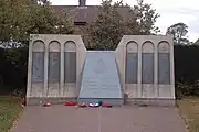 A memorial wall depicting the breaching of the German dams in Operation Chastise, otherwise known as the "Dam Busters" raid, stands in the Royal Gardens (the site of the Royal Hydro Hotel) in the centre of the village. It is dedicated to the memory of those from 617 Squadron who were killed during the war.[22] The memorial is the location of a local school choir photograph, published in Lincolnshire Life magazine, which included a black Labrador dog; the photo-caption asks if this "mysterious" animal was Guy Gibson's dog, which was run over and killed shortly before Gibson departed to bomb German dams.[23]