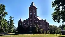 The Woodruff County Courthouse is a historic courthouse at 500 North 3rd Street in Augusta, the county seat of Woodruff County, Arkansas. It is a monumental brick Romanesque Revival building, designed by the noted Arkansas architect Charles L. Thompson and built in 1900. It is roughly rectangular with a hip roof, but has projecting sections as well as a five-stage tower, capped by a pyramidal roof. Its main entrance is to the left of the tower, recessed in a round-arch opening.[2]