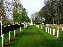 The cemetery was designed by Sir Edwin Lutyens.[1] The cemetery grounds were assigned to the United Kingdom in perpetuity by King Albert I of Belgium in recognition of the sacrifices made by the British Empire in the defence and liberation of Belgium during the war.[4]