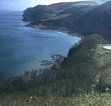 Woody Bay is a bay on the North Devon coast of England, 3 miles (4.8 km) west of Lynton and 8 miles (13 km) east of Combe Martin with a stony beach. It lies in the civil parish of Martinhoe at the edge of the Exmoor National Park and is a waypoint on the South West Coast Path. There were once plans to develop the area to become a holiday resort.