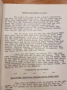 {{cite book}}: CS1 maint: location missing publisher (link) - ↑ Haye, John (2013). Illawarra Rugby - 50 Years. Wollongong.