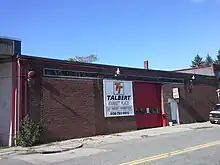 The building formerly housing the Worcester Lunch Car Company manufacturing headquarters with the name still faintly evident in the black area near the top of the wall