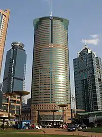 The World Finance Tower (Chinese: 世界金融大厦) is a 43 floor tower in the Pudong area of Shanghai and was completed in 2000. It was designed by architects Leigh & Orange.
