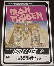 Iron Maiden's first full-length live album Live After Death was recorded during the band's four shows at London's Hammersmith Odeon in October 1984 and four shows at Long Beach Arena in Long Beach, California in March 1985.[7] A video entitled Behind the Iron Curtain documented the band's first shows in Poland, Hungary, and Yugoslavia in August 1984, as they were regarded as the first rock act to take a full stage show into the Eastern Bloc.[8]