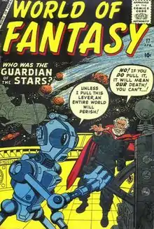 World of Fantasy was a science fiction/fantasy comic book anthology series published by Marvel Comics' 1950s predecessor company, Atlas Comics.[1] Lasting from 1956 to 1959, it included the work of several notable comics artists, including industry legends Jack Kirby, Steve Ditko, and Bill Everett.