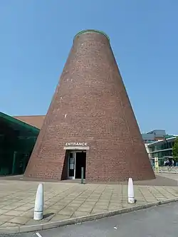 In the early 1990s Pilkingtons undertook the £1m restoration of the Grade II*-listed[7] Pilkington's Jubilee Cone building, a brick cone structure built in 1887 to house the first ever continuous glass making furnace.[8] Following the restoration Pilkingtons floated the idea of utilising now redundant factory space adjacent (known locally as "The Hotties") as a museum for its historic glass collection. With subsequent interest from the Borough Council looking for somewhere to host their collection of local historical art collection, the centre was funded through a National Heritage Lottery Fund contribution of £8,385,000 and European support in the form of Objective One and RECHAR II grants totalling £2,240,000 in addition to other grants.[9][8]