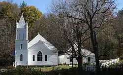 Worth's Chapel, also known as Creston United Methodist Church, is a historic Methodist chapel located at 175 Three Top Road in Creston, Ashe County, North Carolina. The original main building was built in 1902, and is a square, frame building with Gothic and Romanesque design elements. It features a tall comer tower and tall arched windows. The smaller portion was added in the 1990s.The Land was donated by the Pernas family in the late 1990s in order to build the smaller portion that now stands there today. It is used as the parish hall for community events.[2]