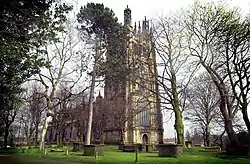 This is Wrexham's original city centre, beginning at the church of St Giles. This area was once the traditional High Street of the city containing most of its traditional shops and markets. It is now home to most of Wrexham's night-life including clubs, bars and restaurants. During the day the main attractions are the area's cafes and the historic 'Butchers Market' hall situated on High Street. The church of St Giles is one of the Seven Wonders of Wales and often noted as the finest example of Gothic architecture in Wales. It is also home to the tomb of Elihu Yale.