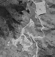 In 1953 the Army placed Wrights Hill Fortress on a "long term care and maintenance basis" and the fortress was sealed in a state of preservation. In 1957 the Coastal Artillery branch was reduced to a cadre status and effectively disbanded. The guns were initially sold for scrap to the Sydney based company Bradman & Coin in 1960, but were ultimately sold on, ironically, to Japan.[1] The gun pits were filled in in 1961 and the defence reserve status was lifted, although 10th Coast Regiment didn't fully relinquish control of the fortress until 1962. The site has since had various civil infrastructure projects built on it by organisations such as the Wellington Municipal Electricity Department, Wellington Water Board and the Civil Aviation Authority.[6] The New Zealand Post and Telegraph Department (later Telecom/Spark) has also used the site to set up telecommunication aerials since 1955, and continued to store equipment in some of the war shelters until 1997.[1]