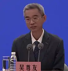 Wu Zunyou (simplified Chinese: 吴尊友; traditional Chinese: 吳尊友; pinyin: Wú Zūnyǒu; 24 June 1963 – 27 October 2023) was a Chinese epidemiologist.[1] Wu served as the chief epidemiologist at the Chinese Center for Disease Control and Prevention and an adjunct professor of epidemiology at the University of California, Los Angeles until his death from pancreatic cancer on 27 October 2023, at the age of 60.[2][3]