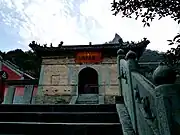 The first site of worship—the Five Dragons Temple—was constructed at the behest of Emperor Taizong of Tang.[2] Further structures were added during the Song and Yuan dynasties, while the largest complex on the mountain was built during the Ming dynasty (14th–17th centuries) as the Yongle Emperor claimed to enjoy the protection of the god Beidi or Xuantian Shangdi.[2] During the Ming Dynasty, 9 palaces, 9 monasteries, 36 nunneries and 72 temples were located at the site.[2] Temples regularly had to be rebuilt, and not all survived; the oldest existing structures are the Golden Hall and the Ancient Bronze Shrine, made in 1307.[2] Other noted structures include Nanyang Palace (built in 1285–1310 and extended in 1312), the stone-walled Forbidden City of the Taihe Palace at the peak (built in 1419), and the Purple Cloud Temple (built in 1119–1126, rebuilt in 1413 and extended in 1803–1820).[2][6] Today, 53 ancient buildings still survive. [2]