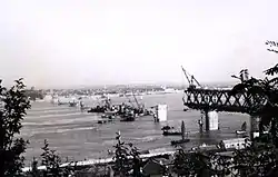 Sun Yat-sen's treatise The International Development of China, published in 1919, emphasized the economic importance of finding a suitable location for building a bridge over or a tunnel under the Yangtze along the Wuhan railway line. At the time, Sun wrote, "There ought to be a tunnel constructed under the first turn of the Yangtze at Wuhan to connect the two banks. Moreover, there ought to be a tunnel or bridge at the mouth of the Han River to link the three cities of Wuchang, Hankou, and Hanyang together into one metropolis."[2] However, contemporary work on the railway bridge over the Yellow River at Zhengzhou sapped China of its limited bridge-building resources.