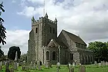 The present Anglican Church of Saint Gregory and Saint Martin at the junction of High Street, Church Street and Churchfield Way is grade I listed. Its original dedication was solely to Pope Gregory the Great. Saint Martin was added c.1475, possibly to recognise the role of Battle Abbey which was itself dedicated to Saint Martin and owned the Manor of Wye, and to be consistent with Wye College.[34][15]