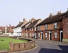 Wye became an important communications centre because of a ford across the River Great Stour connecting with ancient trackways across the North Downs. Romans constructed a road between Canterbury and Hastings using the gap through the North Downs and there have been suggestions the straight Olantigh Road may have been built by them as a separate route from Wye to Canterbury on the east of the River Stour. Remains of an ironworks at the west bank of the river, from that period, have been found. By medieval times, Wye had a market and hosted the local hundred court.[5][6]