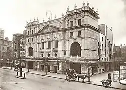 Wyndham's Theatre is a West End theatre, one of two opened by actor/manager Charles Wyndham (the other is the Criterion Theatre). Located on Charing Cross Road in the City of Westminster, it was designed c.1898 by W. G. R. Sprague, the architect of six other London theatres between then and 1916. It was designed to seat 759 patrons on three levels; later refurbishment increased this to four seating levels. The theatre was Grade II* listed by English Heritage in September 1960.[1]