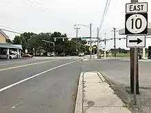 Delaware Route 10 runs east–west along the southeastern edge of Wyoming on Caesar Rodney Avenue, heading west through rural western Kent County to the Maryland border and east along Camden Wyoming Avenue through Camden toward an intersection with U.S. Route 13 and Dover Air Force Base. Delaware Route 15 runs north–south through Wyoming on Southern Boulevard and Railroad Avenue, heading north toward Dover and south toward Woodside.[17] DART First State provides bus service to Wyoming along Route 104, which passes along the eastern edge of town and runs south to the Walmart in Camden and north to the Dover Transit Center in Dover, where it connects to other local bus routes serving the Dover area.[18] The Delmarva Central Railroad's Delmarva Subdivision line passes north–south through Wyoming.[19] Jenkins Airport, a general aviation airport, is located just west of Wyoming.[17]