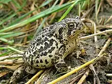 The Wyoming toad (Anaxyrus baxteri), also known commonly as Baxter's toad, is a species of toad in the family Bufonidae. The Wyoming toad is an extremely rare amphibian that exists only in captivity and within Mortenson Lake National Wildlife Refuge in Wyoming in the United States. The Wyoming toad was listed as an endangered species in 1984, and listed as extinct in the wild since 1991. As with black-footed ferrets at the Tom Thorne and Beth Williams Wildlife Research Center at Sybille in Wheatland, Wyoming, the effort to save the Wyoming toad has been a cooperative effort among state and federal agencies and private landowners. The Wyoming toad was common from the 1950s through the early 1970s, but its distribution was limited to the Laramie Basin in Albany County. The population crashed around 1975 and was extremely low by 1980. The Wyoming toad was federally listed as endangered in January 1984. To prevent extinction, a captive-breeding program began in 1989 at the Thorne Williams Unit that produced enough offspring in its first few years to supply seven zoos, and in 1998 the Saratoga National Fish Hatchery received captive-breeding stock. Nearly 46,000 offspring were produced at the Thorne Williams Unit from 1995 until 2006, when the remaining captive stock was moved to the Red Buttes Environmental Biology Laboratory south of Laramie, and then released back into the wild. Before the sharp declines occurred, this toad had been originally classified as Bufo hemiophrys baxteri, a subspecies of the Canadian toad, by Kenneth Raymond Porter in 1968.