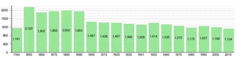 Wyssachen has a population (as of December 2020) of 1,103.[8] As of 2012, 3.3% of the population are resident foreign nationals. Between the last 2 years (2010-2012) the population changed at a rate of -0.3%. Migration accounted for 0.1%, while births and deaths accounted for -0.3%.[9]