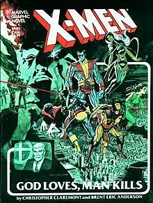 X-Men: God Loves, Man Kills (Marvel Graphic Novel #5) is an original graphic novel published in 1982 by Marvel Comics, starring their popular superhero team the X-Men. It was written by Chris Claremont and illustrated by Brent Anderson. The book served as the primary inspiration for the 20th Century Fox film X2, which saw Claremont return to write the novelization. Inspired by the rise of televangelism in the 1980s, the story deals with the overall religious extremism against mutants.
