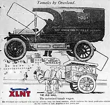 ![]() XLNT Tamale Co. horse-drawn delivery wagon, 1906 | |