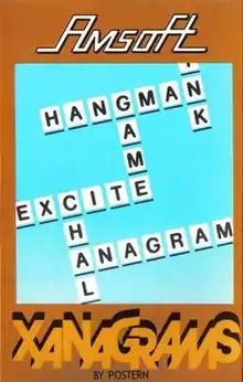 Xanagrams is an educational game that is a cross between a crossword puzzle and Scrabble. It was given away for free with the Amstrad CPC 464 and was a popular game.[1] There are 3 difficulty level to the game, from middle school aged to adults. A game can consist of 1-5 words and the player is given a jumble of letters to sort out to form the correct words.