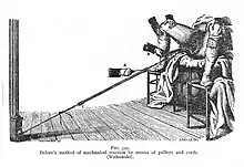 Delore's method of mechanical traction with pullies and cords, 1929.