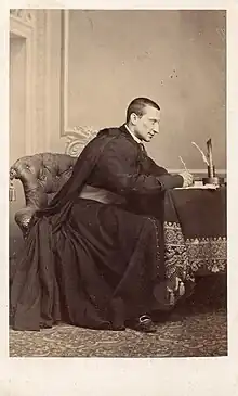 Xavier de Mérode was the son of Count Félix de Mérode-Westerloo, who held in turn the portfolios of foreign affairs, war, and finances under Leopold I of Belgium, and of Rosalie de Grammont. He was allied through the House of Mérode to the aristocracy of France. He lost his mother at the age of three and was raised at Villersexel, in Franche-Comté, by his aunt Philippine de Grammont,[1] Xavier was the brother-in-law of Charles Forbes René de Montalembert,[2] and the grand-nephew of Gilbert du Motier, Marquis de Lafayette.[3]