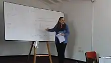 Professor de la Ossa has belonged to scientific committees of several organizations for the promotion of scientific events in Latin America, among them the Mesoamerican Centre for Theoretical Physics[10] and the School of Mathematics of Latin America and the Caribbean.[11] She has been elected to the Costa Rican National Academy of Science.[12] She has been invited as speaker to many conferences at academic institutions around the world.[13][14][15][16][17]