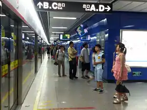 Xiaobei Station (Chinese: 小北站; Cantonese Yale: Síubāk Jaahm) is a station on Line 5 of the Guangzhou Metro.[1] It is located under East Huanshi Road (环市东路) near the Beixiu Building (北秀大厦) in the Yuexiu District.[2][3][4] It opened on 28 December 2009.[5]