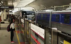 Xunfenggang Station (Chinese: 浔峰岗站) is an elevated terminus of Guangzhou Metro Line 6.[1] It start operations on December 28, 2013.[2] It is located at the south of Xunfenggang (浔峰岗), A1 Road, Jinshazhou, Baiyun District.[3] Since the terminus approaches near Lishui, Nanhai District, Foshan over Xunfenggang, many residents suggested extending Guangzhou Metro from Xunfenggang to Lishui.[4] Guangzhou authorities are considering the suggestion.[5]