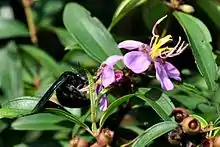 The Oriental carpenter bee, Xylocopa nasalis, or Xylocopa (Biluna) nasalis, is a species of carpenter bee. It is widely distributed in Southeast Asian countries. It is a major pollinator within its ecosystem, and is often mistaken for a bumblebee.[2] The species leads a solitary lifestyle with a highly female-biased colony in the nest.[3]