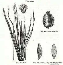 - ↑ illustration of Xyris indica (syn of X. caroliniana). Imagen procedente de "Histoire des plantes. Monographie des Taccacées, Burmanniacées, Hydrocharidacées, Commelinacées, Xyridacées, Mayacacées, Phylidracées" de Henri-Ernest Baillon publicado en 1894