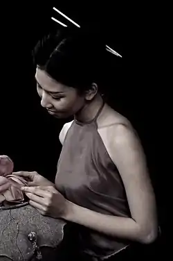 A yếm or áo yếm (Vietnamese: [ʔiəm˧˦], chữ Nôm: 裺 or 襖裺) is a traditional Vietnamese undergarment that was once worn by Vietnamese women across all classes. It was most usually worn underneath a blouse or mantle to preserve modesty.