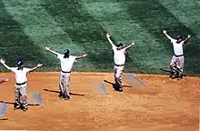 Following the sixth inning of New York Yankees baseball games at Yankee Stadium, the grounds crew traditionally grooms the infield while leading the crowd in the dance.[32]